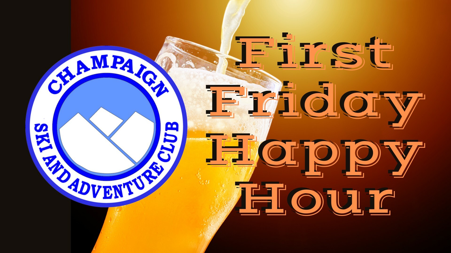 The Champaign Ski and Adventure Club hosts a happy hour at a local establishment on the first Friday of each month.